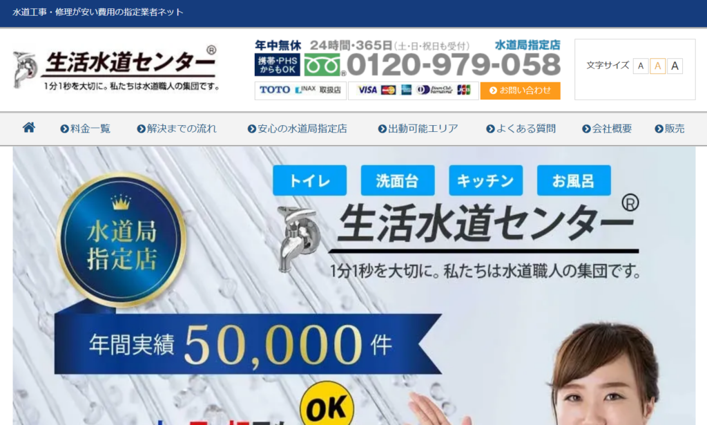 生活水道センターは、トイレつまりや水漏れなどの水回りトラブルに幅広く対応している修理サービスで、全国対応・24時間365日受付という利便性の高さが特徴です。急なトラブルにもスピーディーに対応してくれるため、「今すぐ何とかしたい」という場面でも頼りになる存在です。